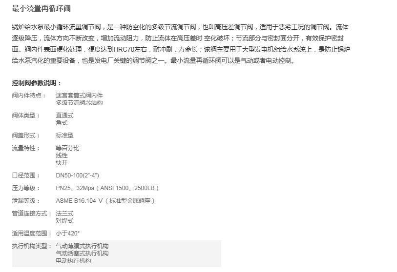 最小流量再循环阀