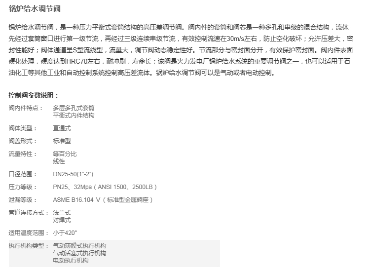 锅炉给水调节阀