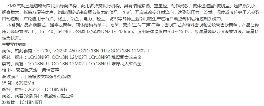 ZMX气动三通切断阀
