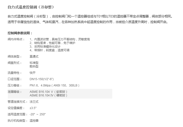 自力式温度控制阀(冷却型)